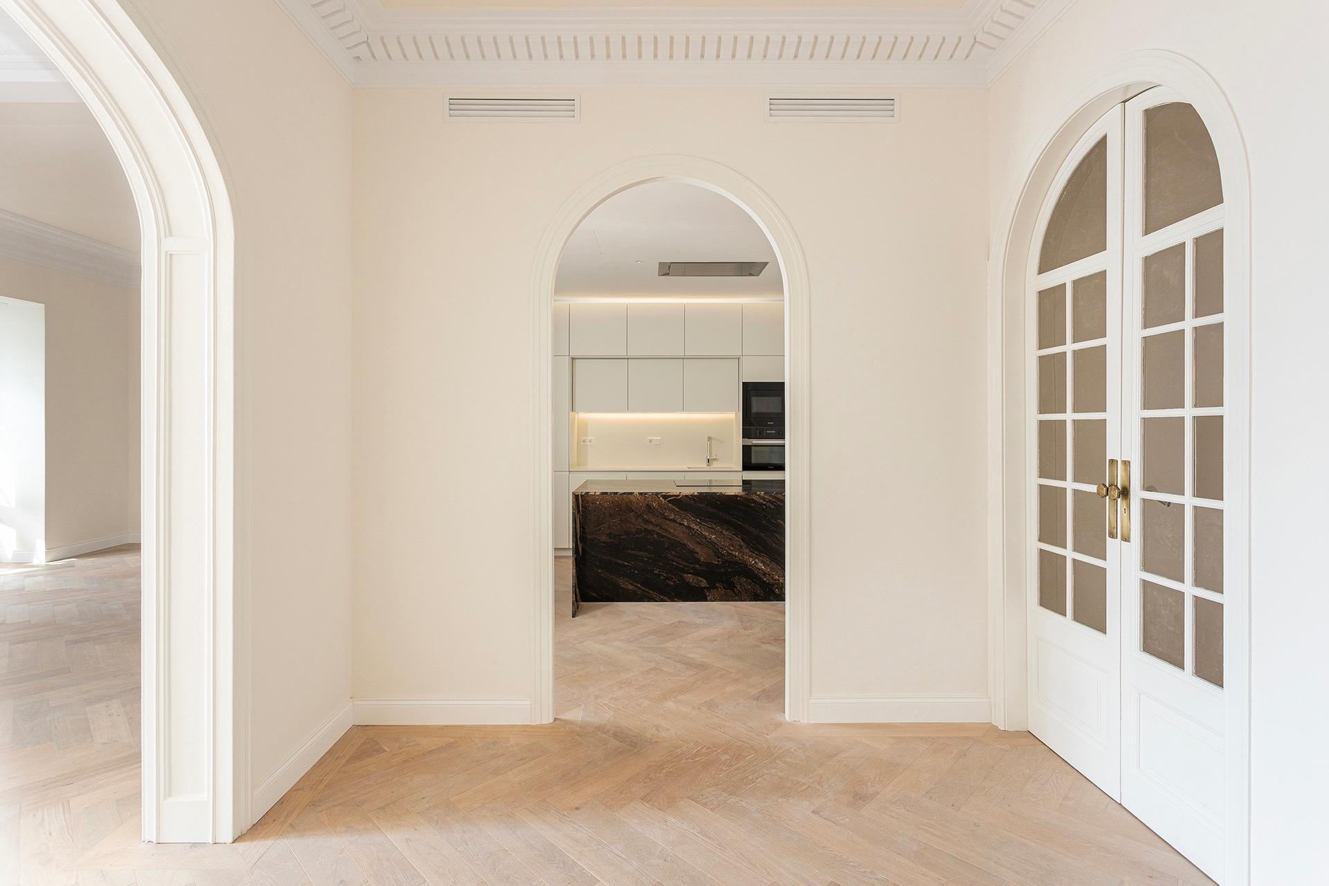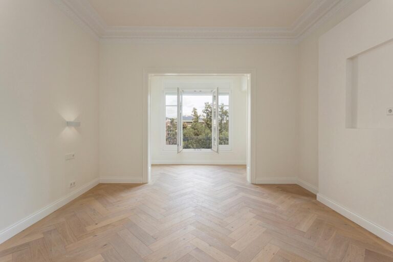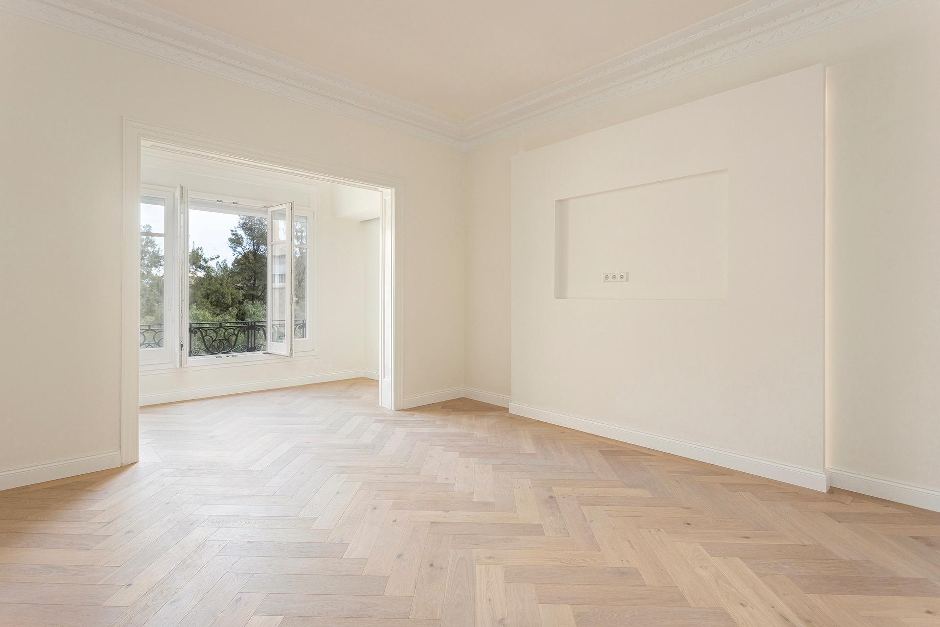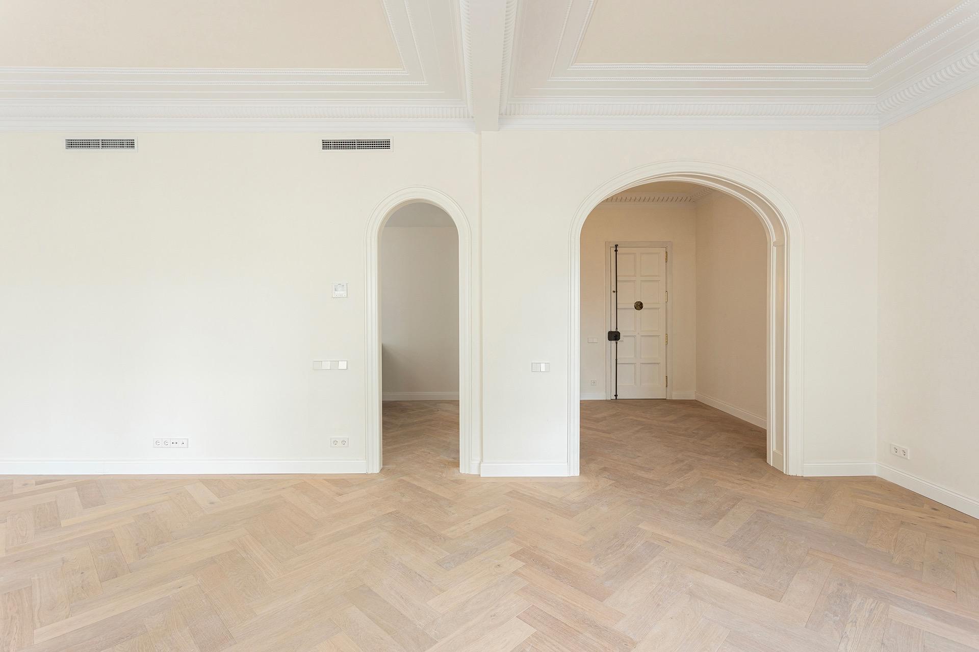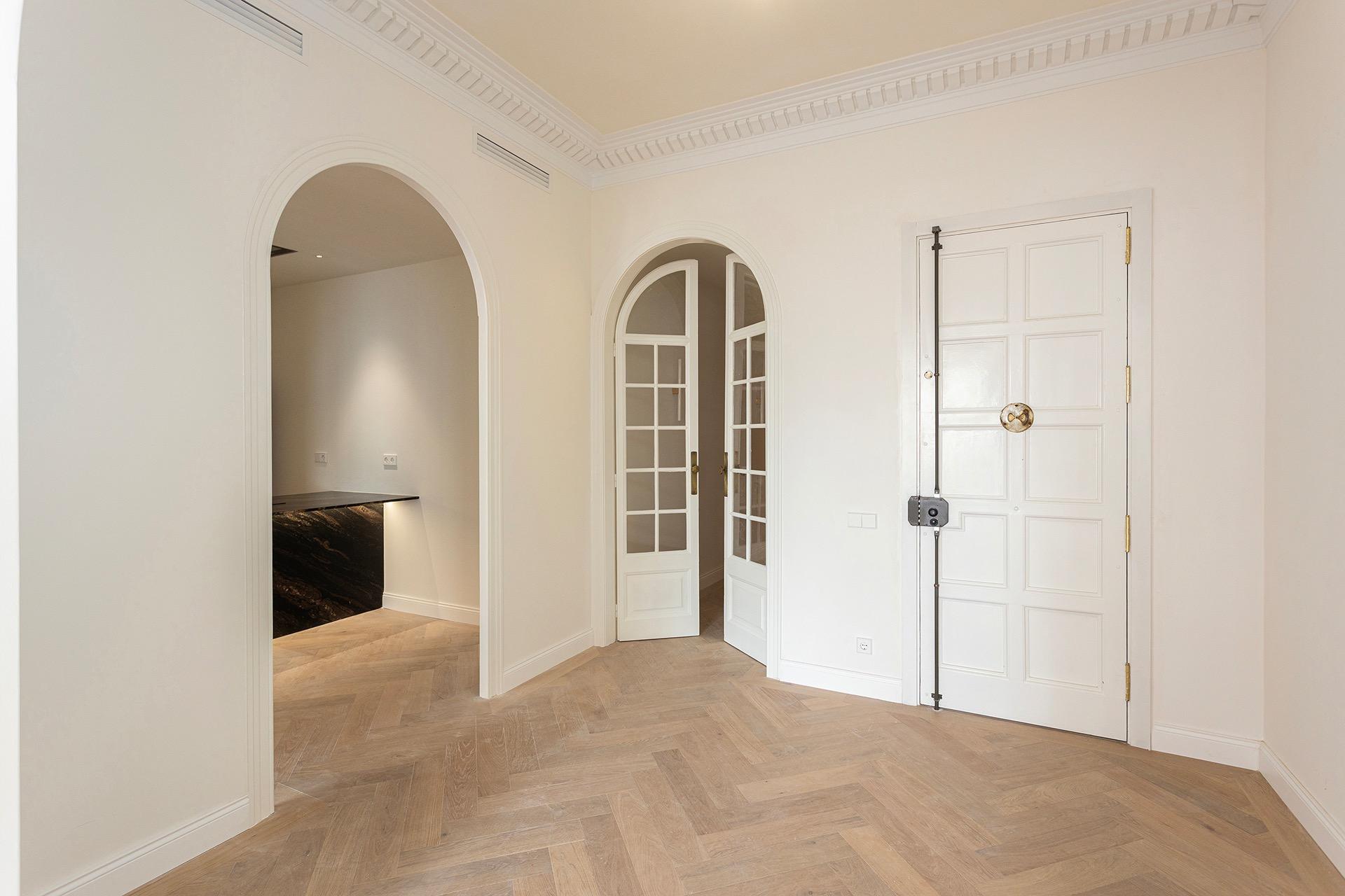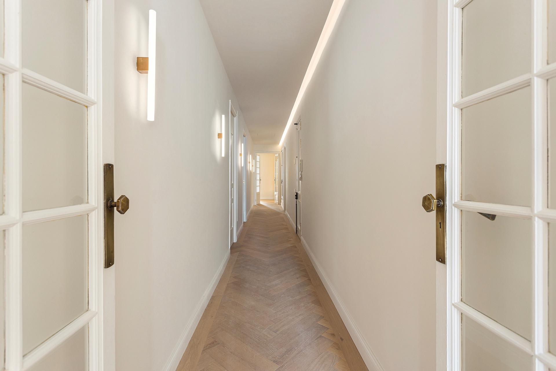 La zona de día ofrece un ambiente sofisticado y acogedor, con acabados de alta gama y materiales cuidadosamente seleccionados, como madera de roble y parquet en espiga, que aportan calidez y distinción a toda la vivienda.