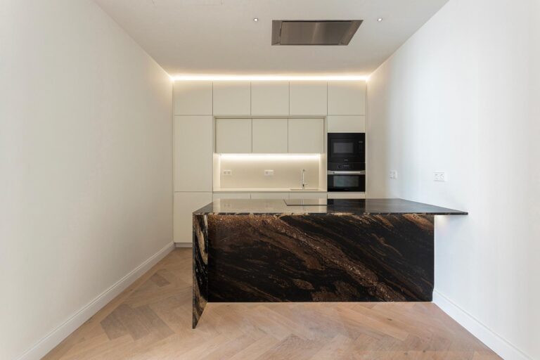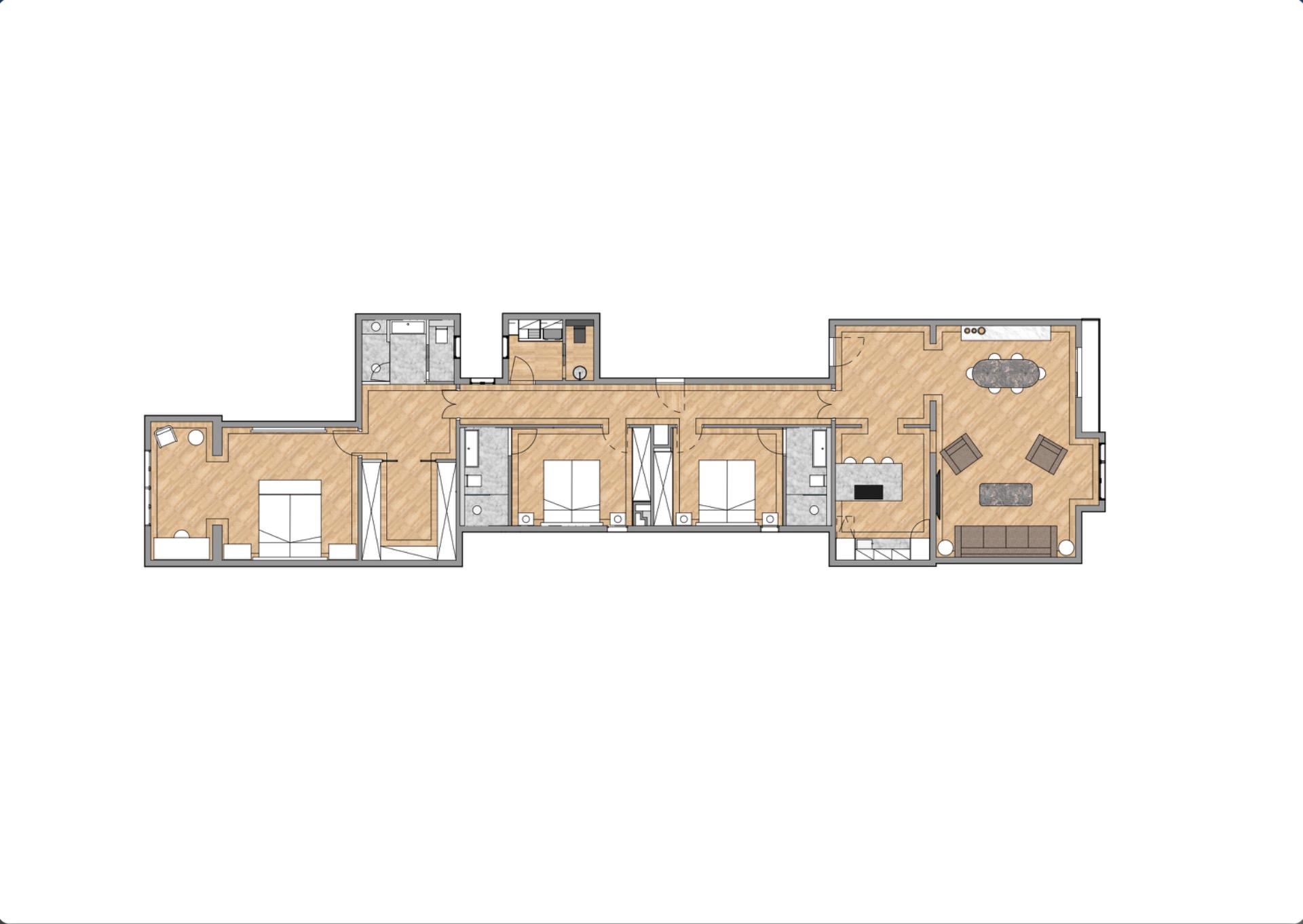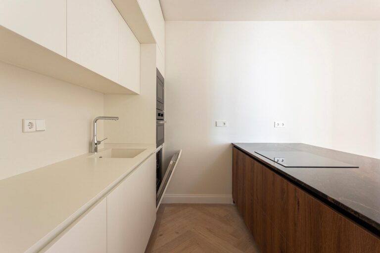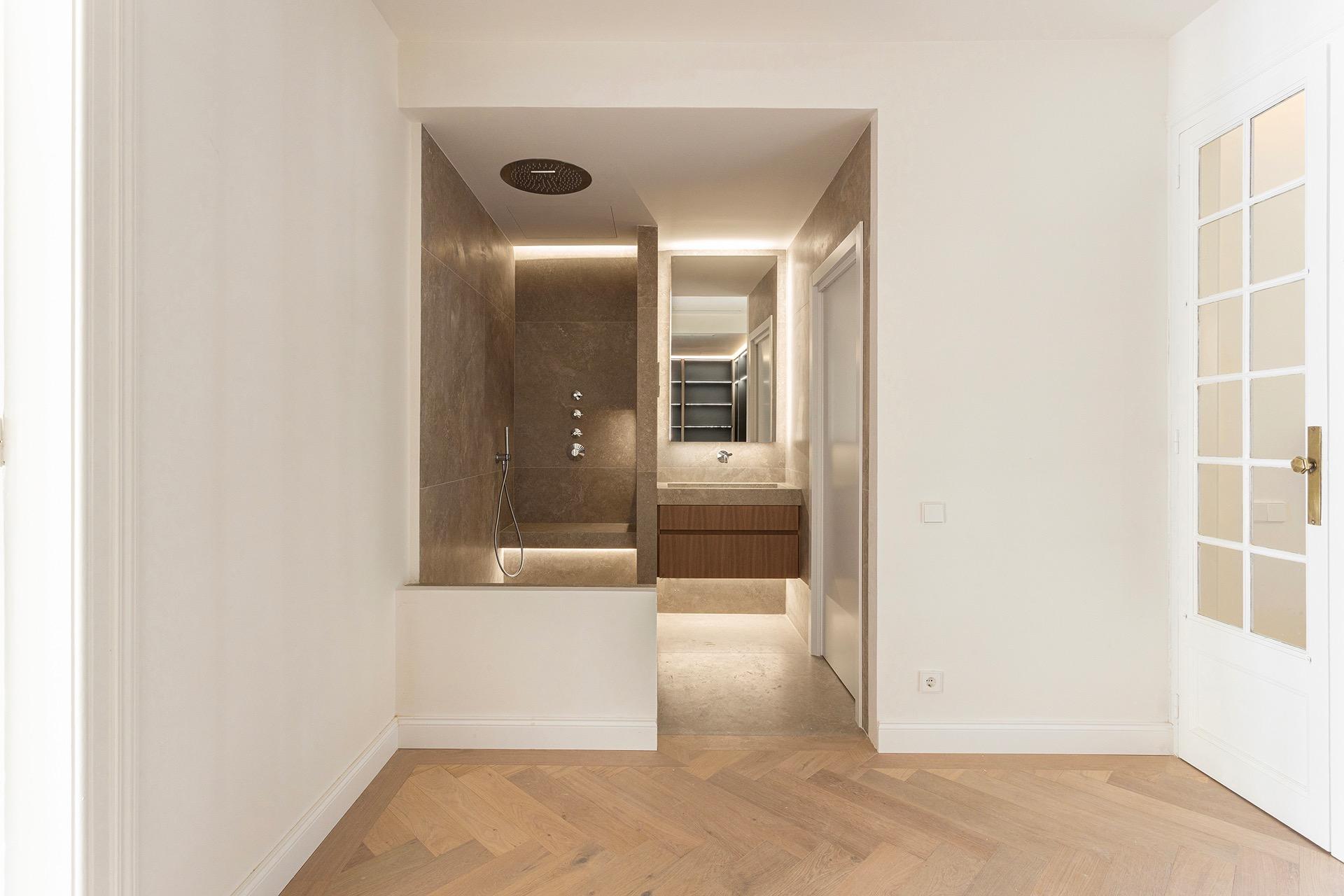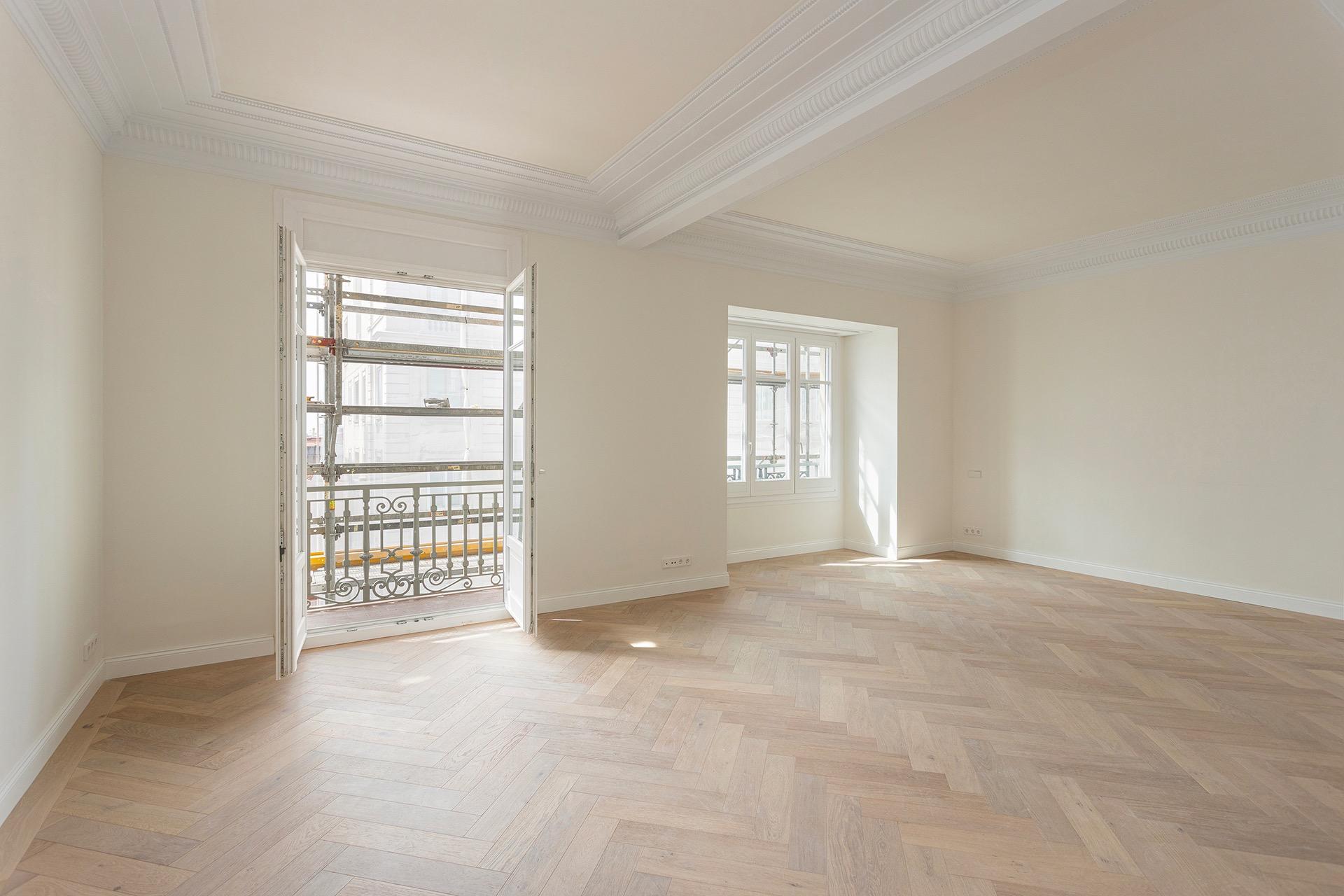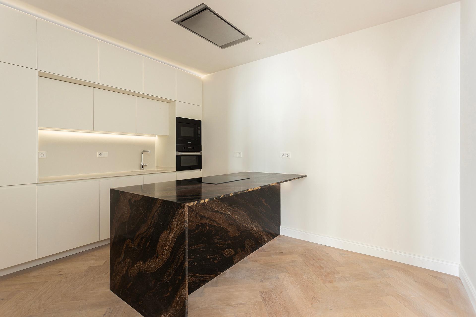 La zona de día ofrece un ambiente sofisticado y acogedor, con acabados de alta gama y materiales cuidadosamente seleccionados, como madera de roble y parquet en espiga, que aportan calidez y distinción a toda la vivienda.