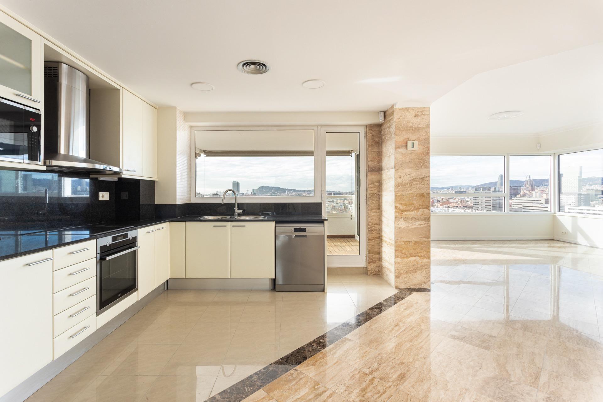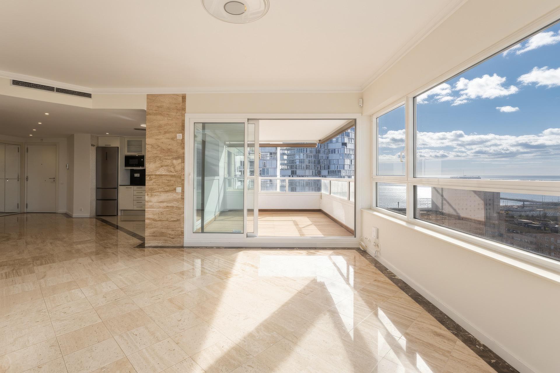 Este exclusivo apartamento se sitúa en la privilegiada 14ª planta de uno de los rascacielos más emblemáticos de Diagonal Mar, en segunda línea de mar, y ofrece vistas absolutamente inigualables al Mediterráneo y al skyline de Barcelona. Su orientación suroeste garantiza una luminosidad excepcional durante todo el día y permite disfrutar de espectaculares atardeceres desde su magnífica terraza privada de 18 m², con acceso directo tanto desde el salón como desde la cocina.