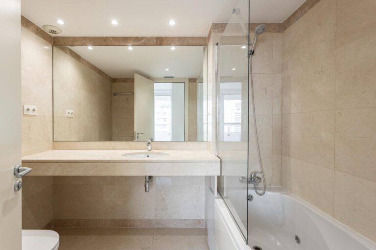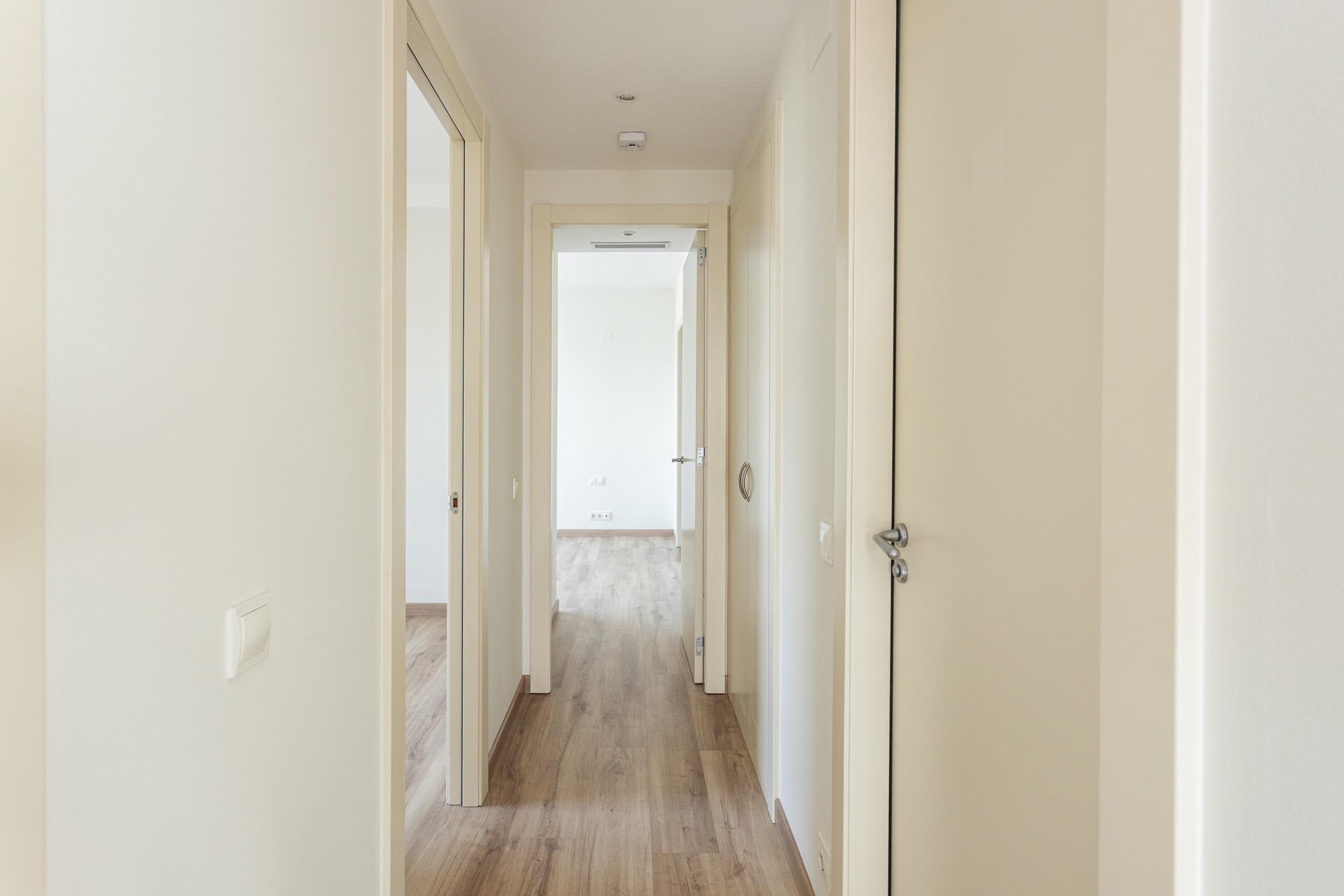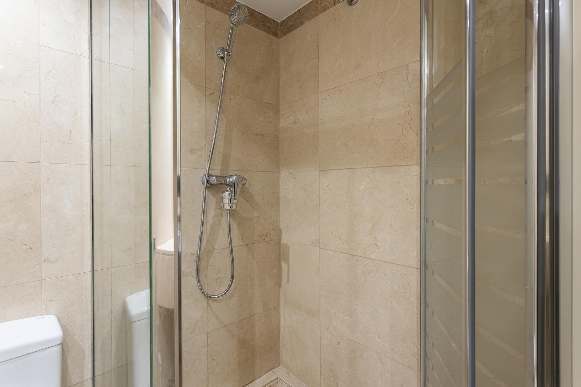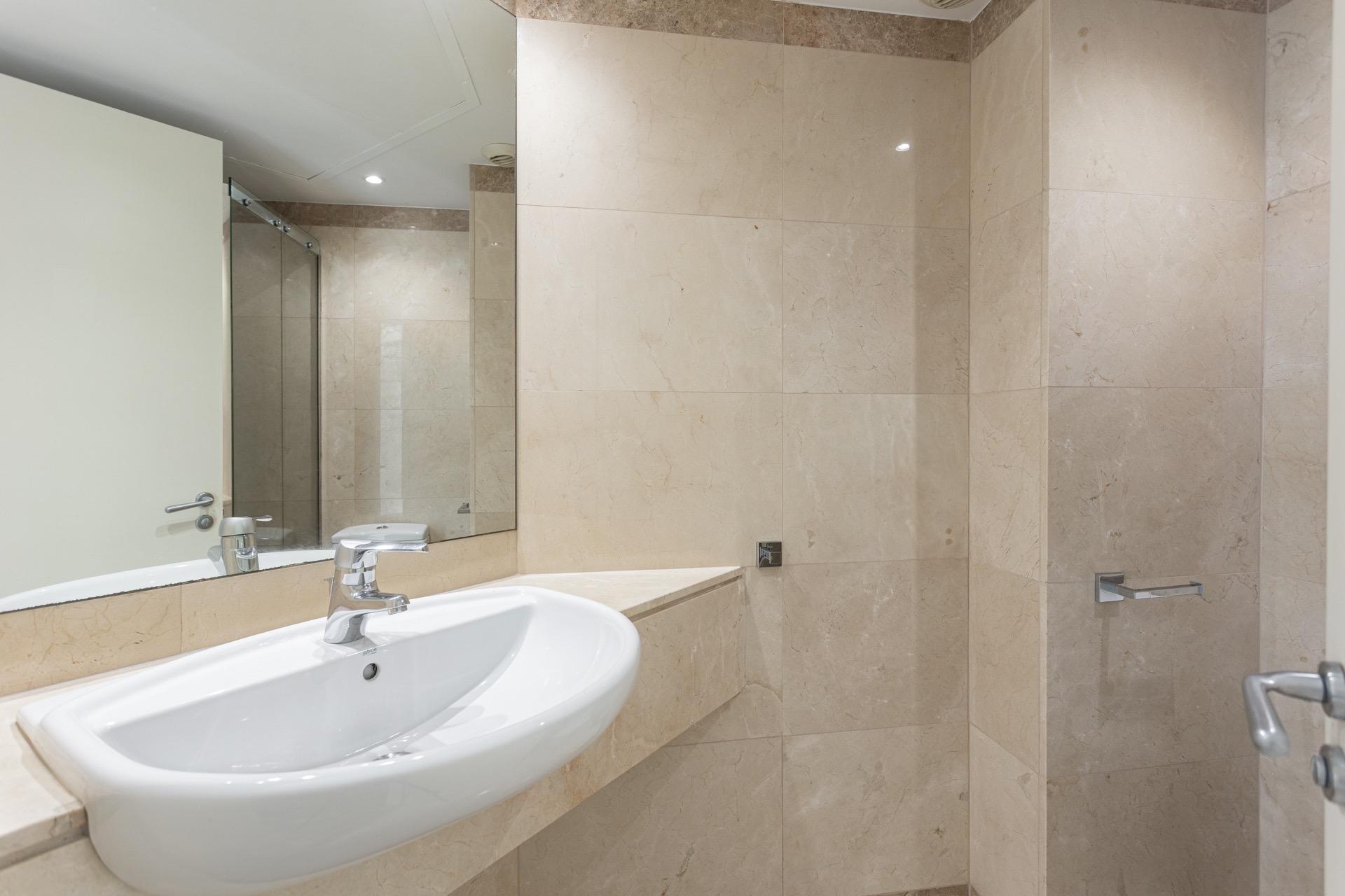 La vivienda se distribuye en un amplio y elegante salón-comedor con cocina americana de diseño, perfectamente integrada, tres dormitorios exteriores —uno de ellos en suite, con vestidor y bañera de hidromasaje— y dos baños completos. Los acabados de alta gama, como los suelos originales de mármol combinados con parqué, aportan un carácter sofisticado y atemporal a la vivienda. Todas las estancias son exteriores, lo que refuerza la sensación de amplitud, confort y conexión constante con el entorno, tanto natural como urbano.